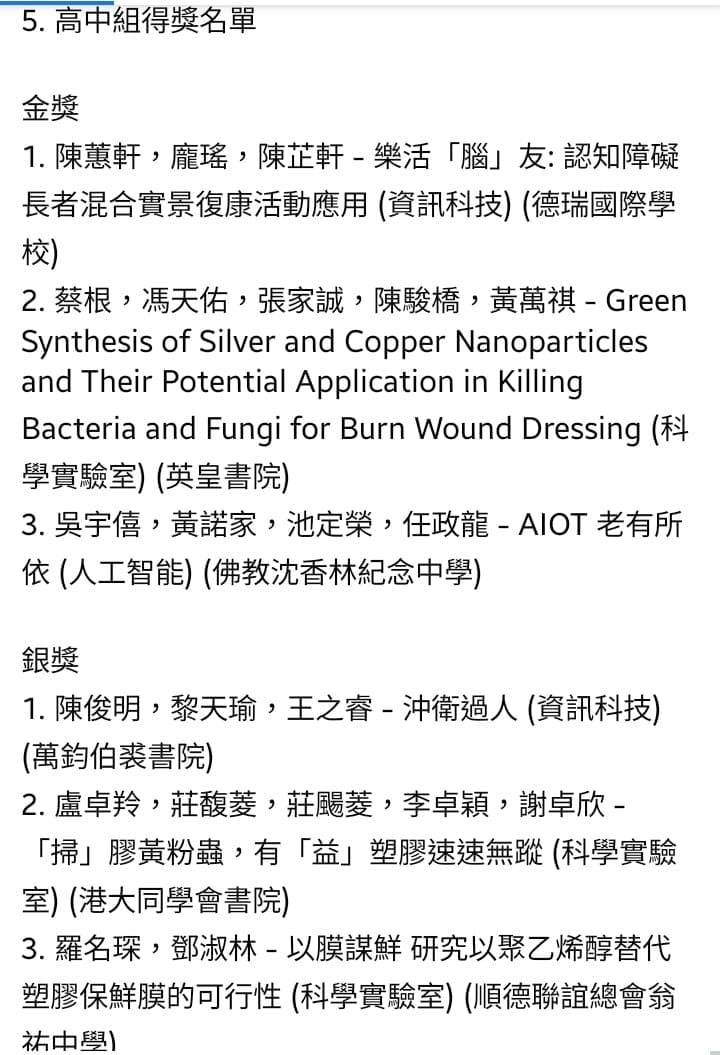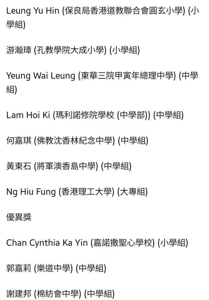 何嘉琪老師與4位學生代表學校參加由教育局及政府資訊科技總監辦公室支持、「香港新興科技教育協會」主辦的2022年大灣區STEM卓越獎(香港區),並獲得以下獎項: