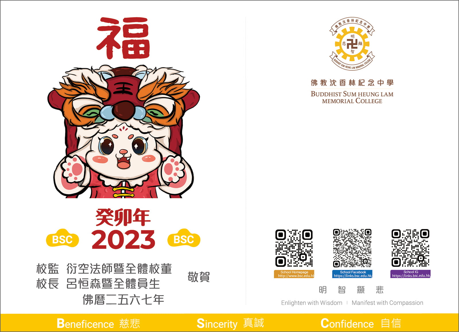 佛教沈香林紀念中學法團校董會成員及全體師生,祝願各位一直支持沈中的友好朋友,在癸卯兔年身體健康、事事如意、幸福快樂、溫情洋溢。