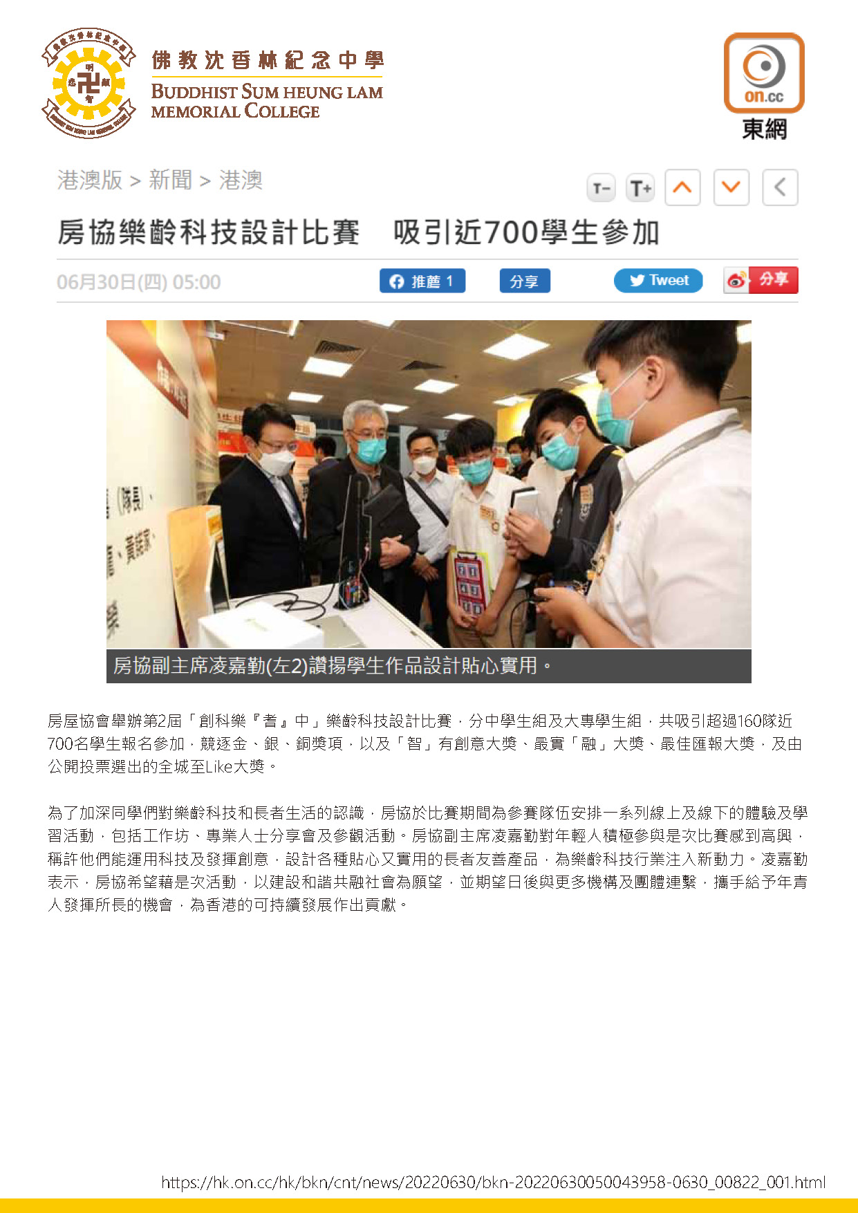 發佈日期 : 2022 年 6 月 30 日香港房屋協會(房協)「創科樂『耆』中」樂齡科技設計比賽 2021/22