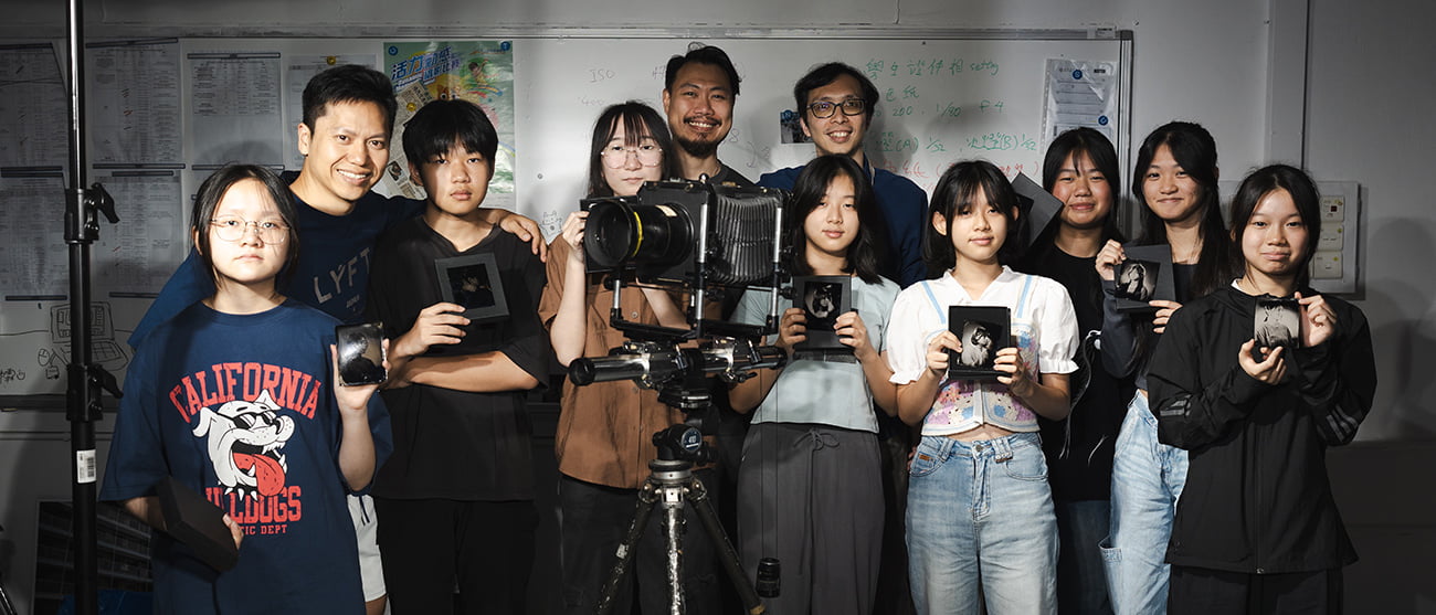 早在菲林還未面世的19世紀中期,攝影師只能透過玻璃板或金屬薄片作「底片」記錄影像。由於拍攝前要在玻璃板表面塗上火綿膠及硝酸銀溶液,因此這項技術又稱為「濕版攝影」。當玻璃板經過曝光、顯影及定影後,影像最終會在板上呈現,成為一幅獨一無二的藝術品。 在張益平先生及Paul 的帶領下,本校的學生不但能一睹百多年前的工藝,還可以即時學以致用,利用濕版攝影為朋友留影,提升他們對攝影的認識及興趣。