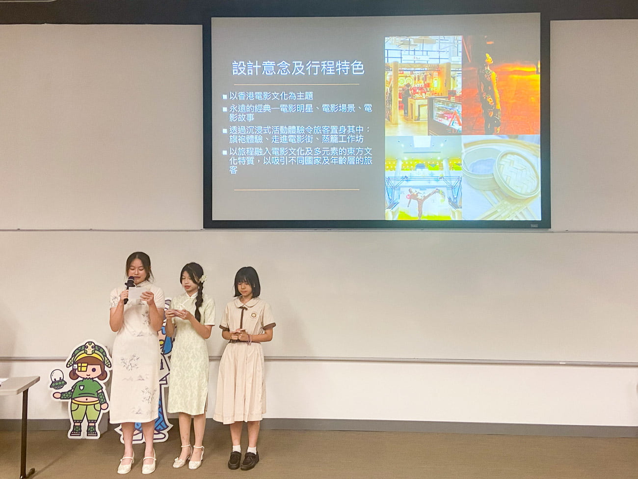 5位中四級旅遊與款待學生─4A羅如伶、4A李芷晴、4A沈煥庭、4C李泳霖及4C嚴凱穎嘗試以小組形式發掘具有香港特色的獨特景點,以香港電影文化為主題設計行程路線,並透過宣傳片拍攝、說故事及導賞技巧,向評審團及公眾展示香港旅遊的獨特魅力。