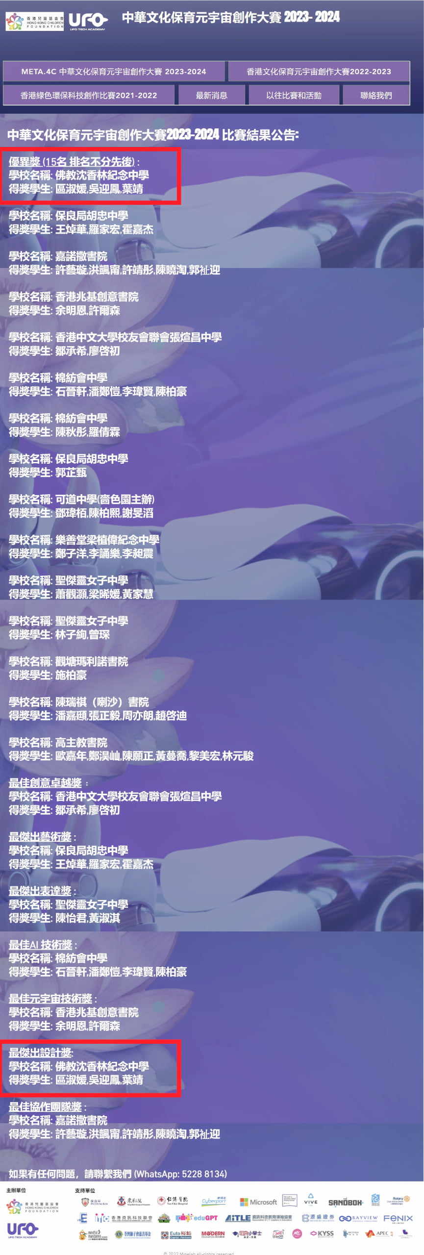 獲獎同學已於九月七日出席「中華文化保育元宇宙創作大賽2023-2024」頒獎典禮。
