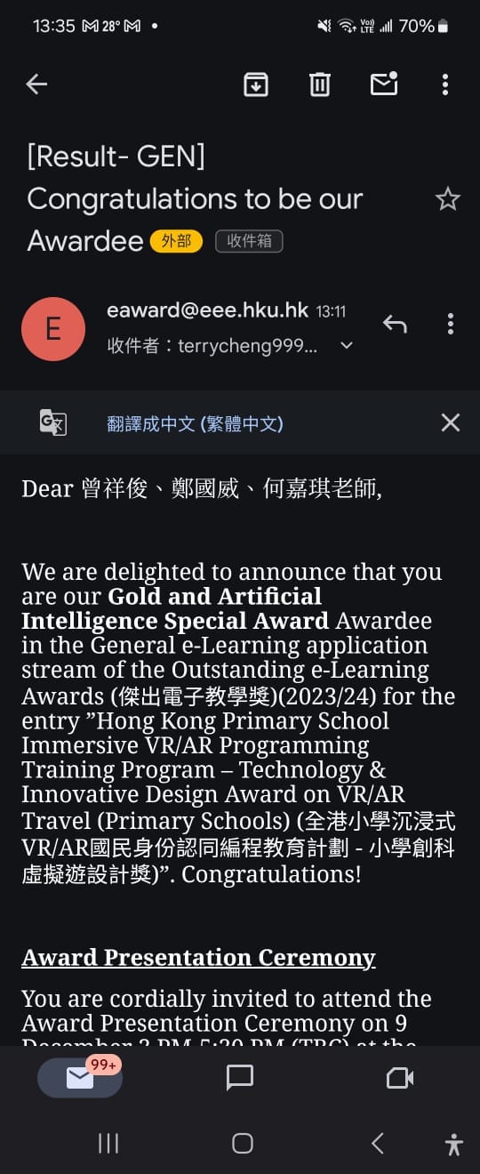 傑出電子教學獎(2023/24) – 電子教學應用組別 – 小學組 – 金獎、人工智能特別獎