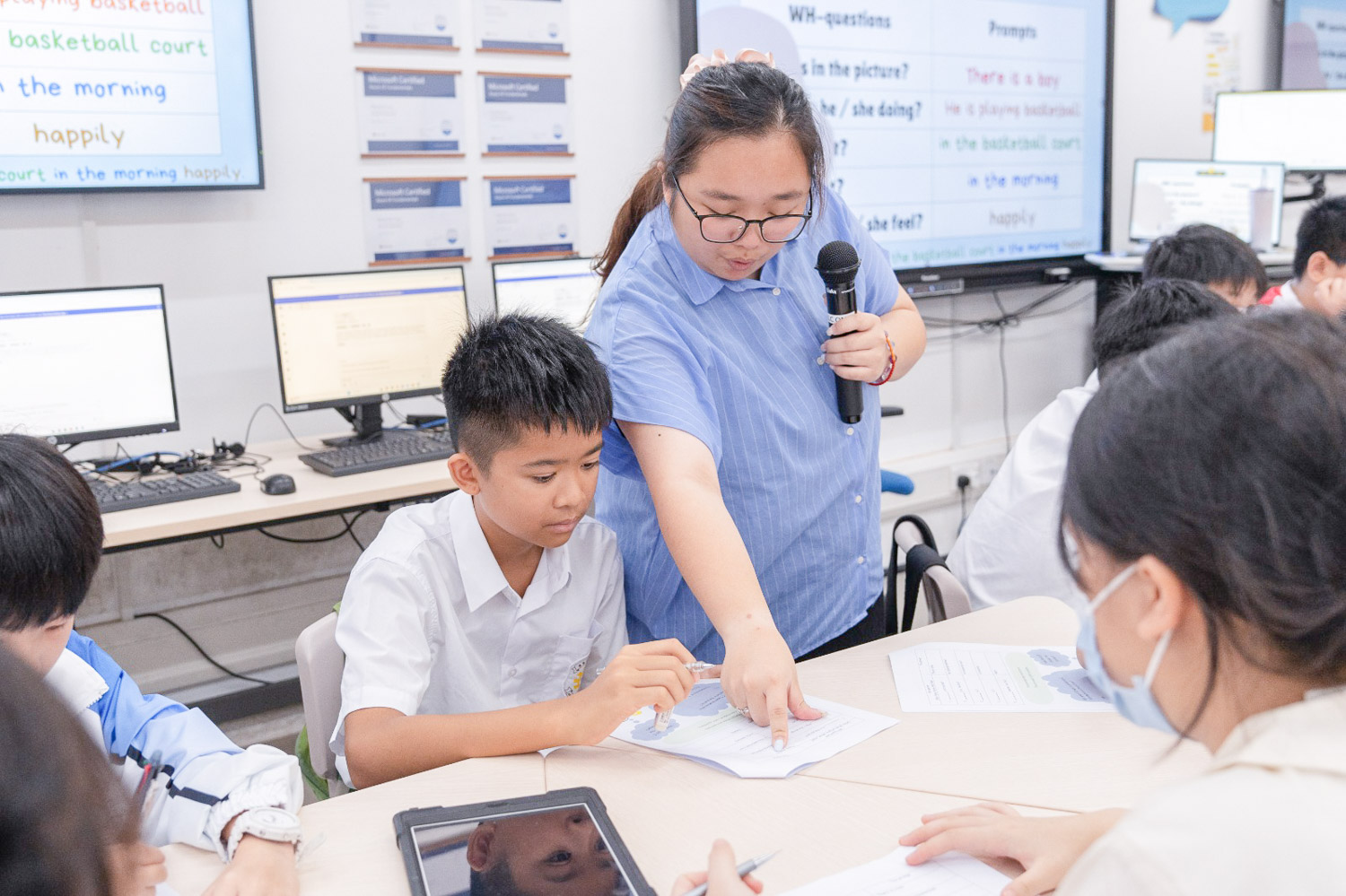 本校佛教沈香林紀念中學於2025年7月21日,在中一新生適應課程中舉行了英文公開課「AI in English」,有幸邀請到香港中文大學課程與教學學系客座助理教授施敏文博士前來觀課並提供指導。參與者包括中一新生、家長以及施博士,課堂氣氛熱烈而富有啟發性。