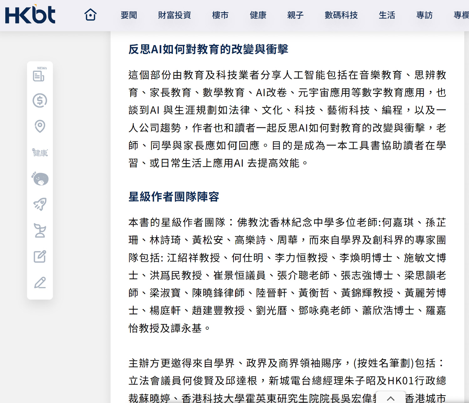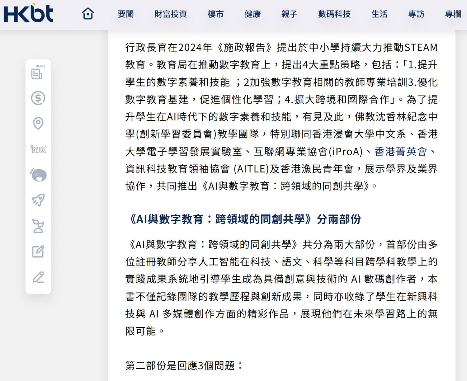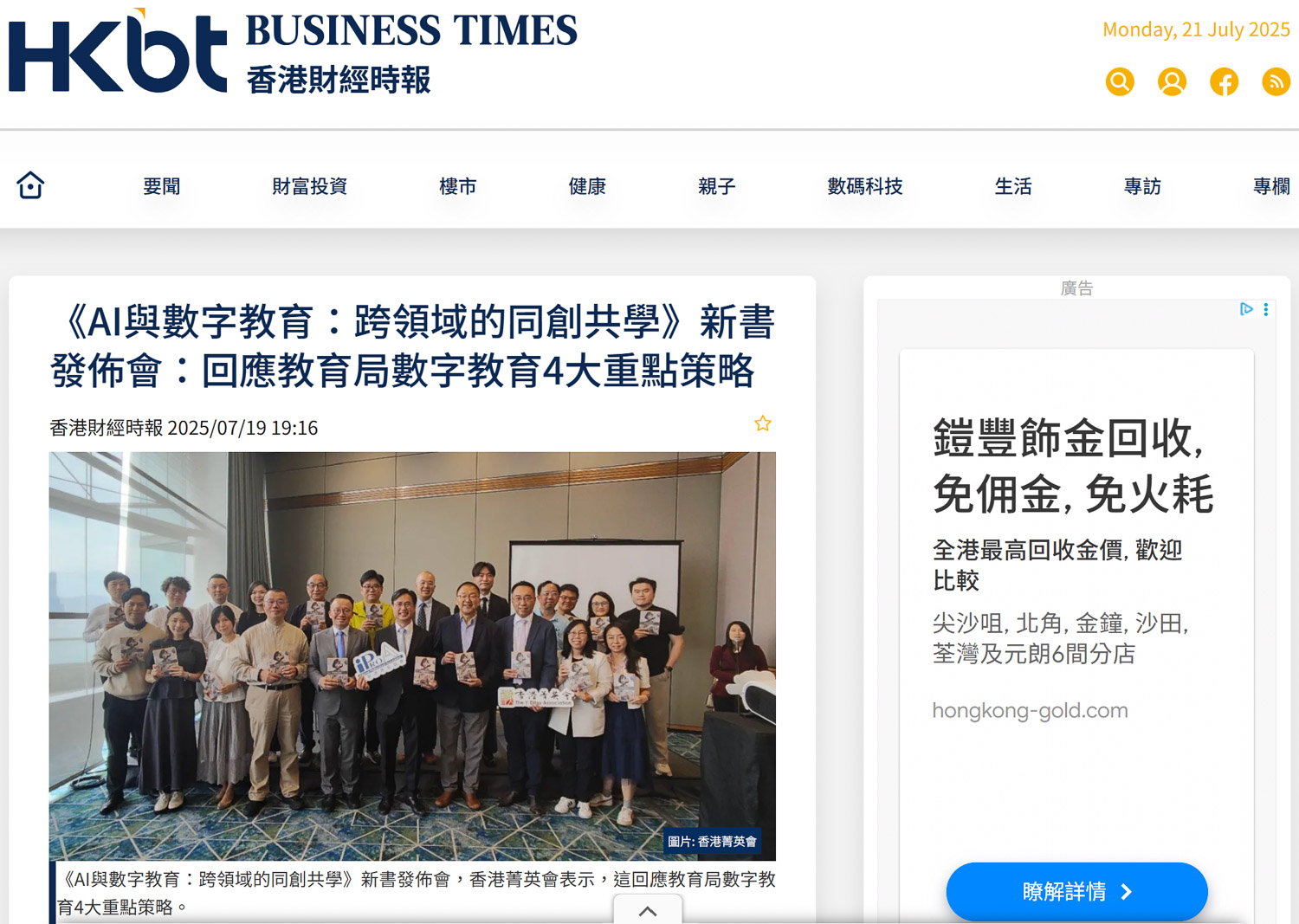 [媒體報導 香港財經時報]《AI與數字教育:跨領域的同創共學》新書發佈會:回應教育局數字教育4大重點策略