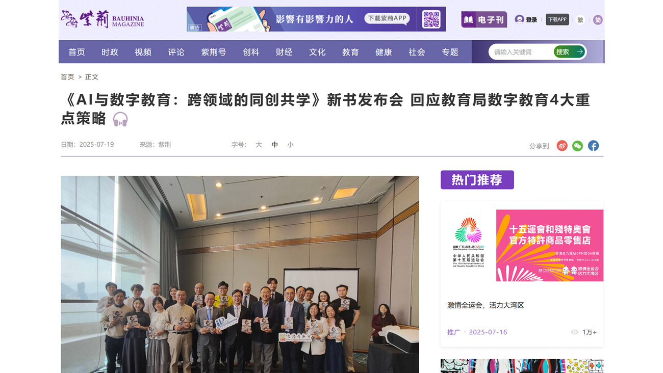 [媒體報導 紫荊雜誌社]《AI與數字教育:跨領域的同創共學》新書發佈會:回應教育局數字教育4大重點策略