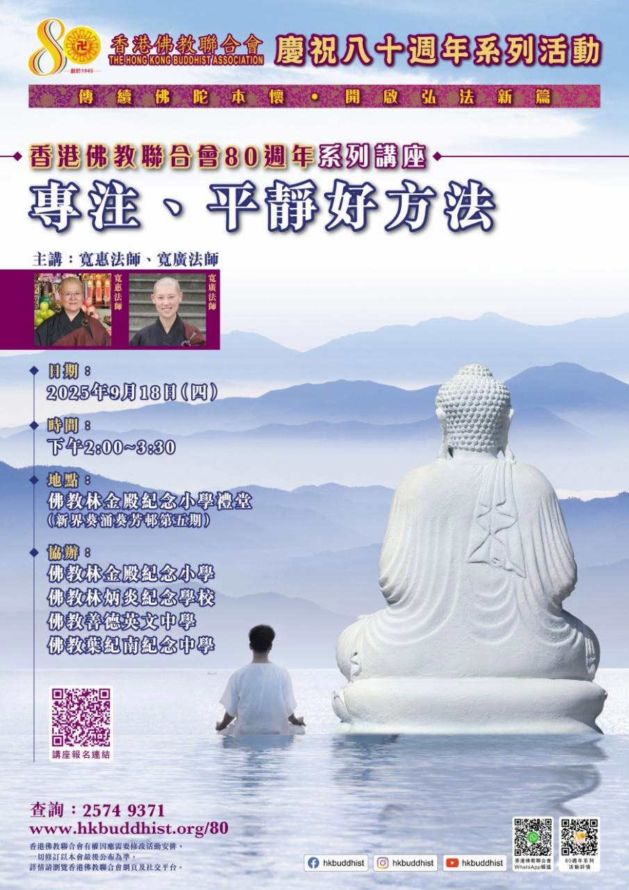 「香港佛教聯合會八十週年系列講座」專注、平靜好方法