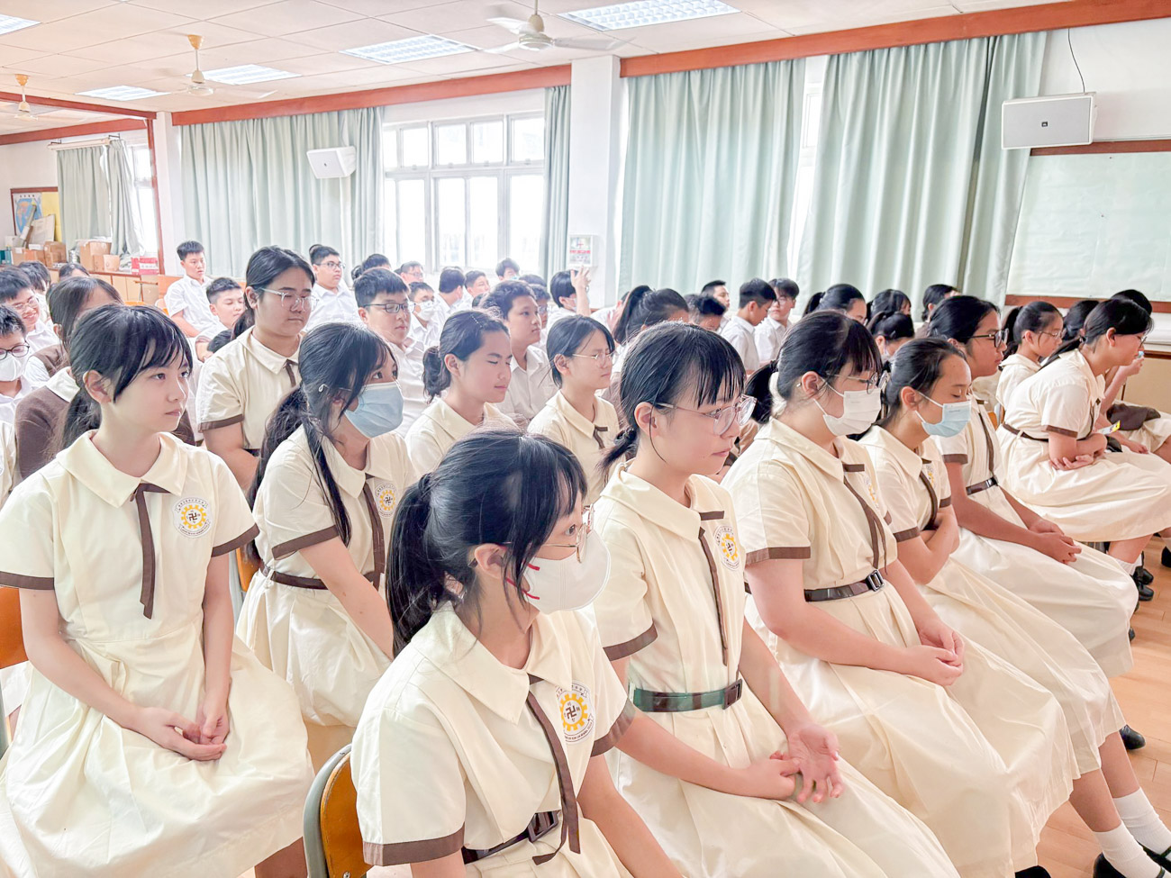 九月四日輔導委員會邀請到醫教社精神科護士作「升中學生講座」的主講嘉賓,深入探討中學生最常面臨的各種壓力,包括課業壓力、人際關係困擾及自我認同問題。此講座為同學解釋壓力來源,辨識常見的情緒警號,如焦慮、憂鬱等,並破除對心理健康的常見迷思。講座並非單向講授,在講解完每個精神健康小知識及概念後會有輕鬆的有獎問答,以及簡易的「放鬆呼吸法」練習,引導學生一步步理解自己的內心狀態。
