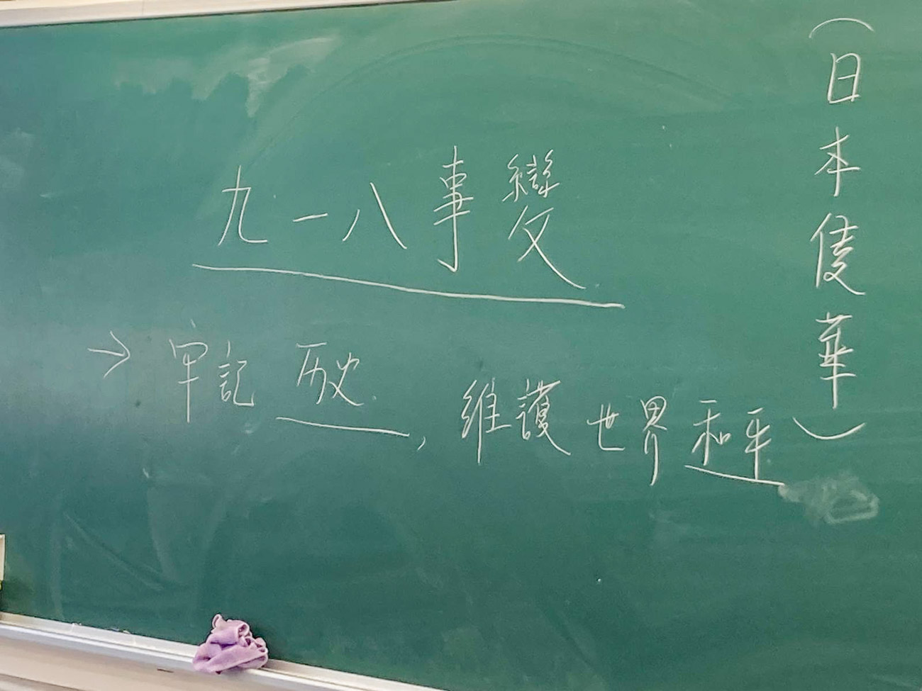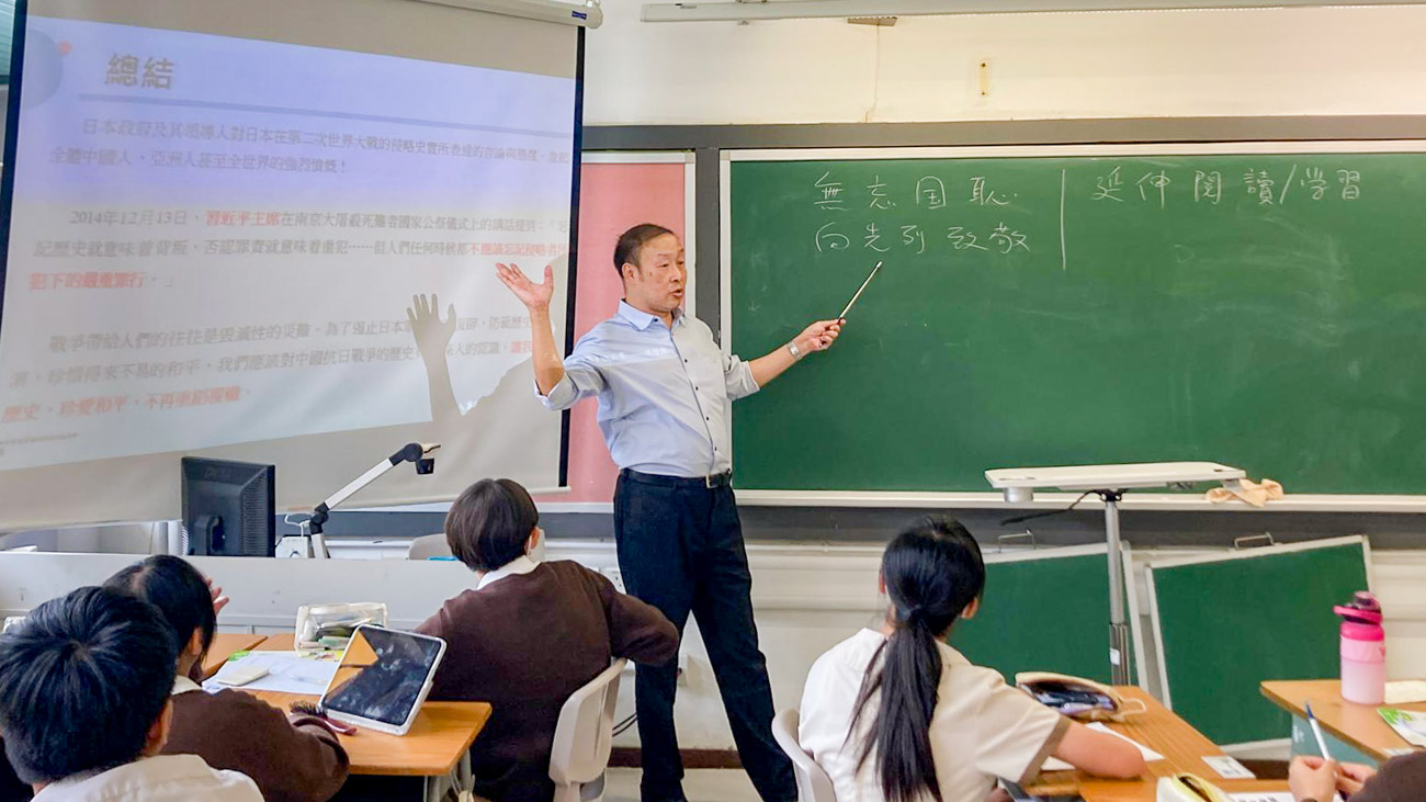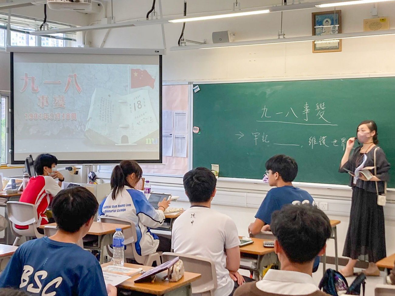 本年是「九一八事變 」94周年,本校善用高中公民科、初中中國歷史科課堂自然連繫國家歷史大事,由老師向同學們簡要講述了九一八事變的歷史背景和重要意義,引導學生學習珍惜得來不易的和平日子、並感恩國家先賢的犧牲與付出,激發學生活好當下、自強不息。