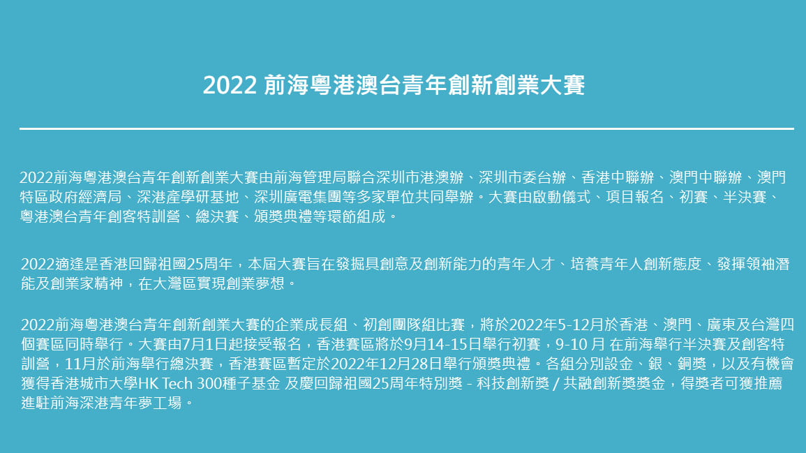 「2022前海粵港澳台青年創新創業大賽」獲獎消息