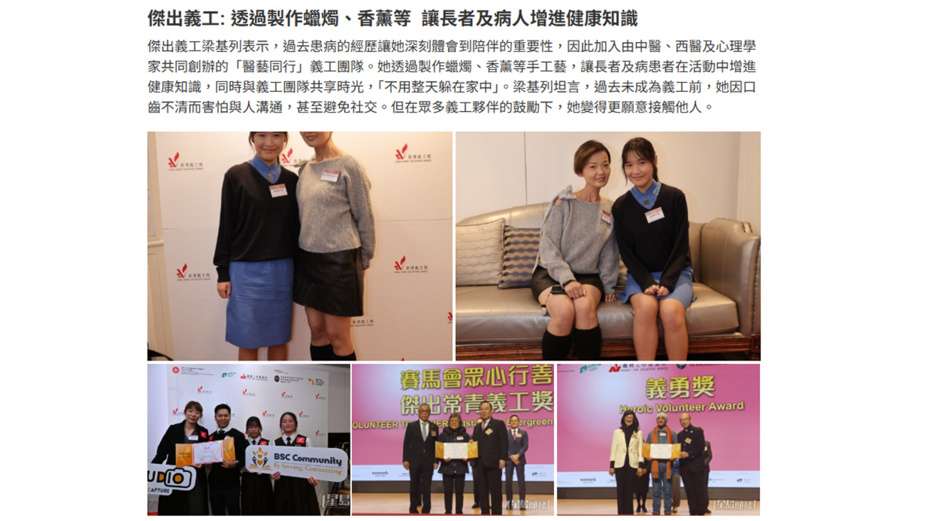 [媒體報導_星島頭條] AI助長者重披婚紗、音樂治療復康者 香港義工獎表揚多元創新服務