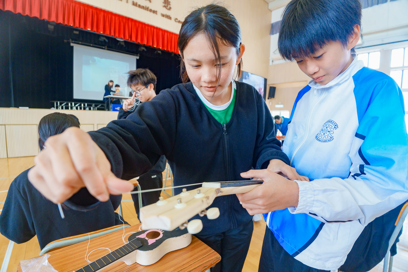 活動期間,學生親手設計及製作屬於自己的夏威夷小結他(Ukulele),從認識樂器結構、組裝零件到調音上弦,體驗從無到有的創作滿足感,感受音樂帶來的喜悅。