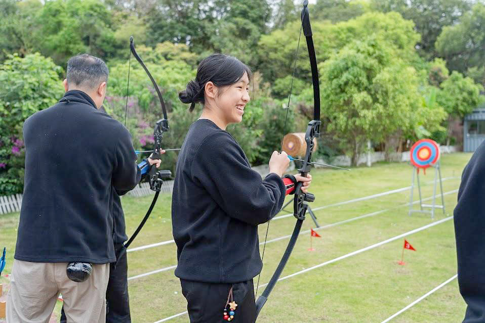 次日活動結合動態體驗與靜態學習:學生將挑戰射箭及氣槍射擊等課堂上較少接觸的運動項目,於專注與調整之間,學會冷靜自持、反覆修正,從而磨練耐性、提升專注力;同時,由專家帶領的地質講解,引領學生認識多樣地貌與岩石種類,將視野由腳下延伸至世界,深化對自然環境的理解與認知。