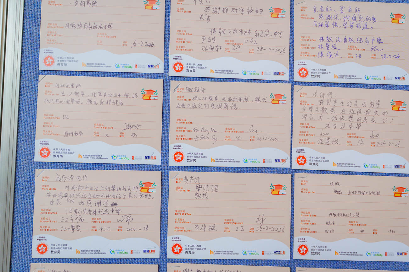 為弘揚尊師重道的精神,學校今年繼續舉辦「家長敬師心意卡」活動。不少家長踴躍參與,親筆寫下對教師的感激之情,感謝老師們在過去一年對學生的辛勤付出與無私奉獻。一張張充滿溫暖字句的心意卡,不僅拉近了家校距離,也給予了教學團隊莫大的支持與肯定。