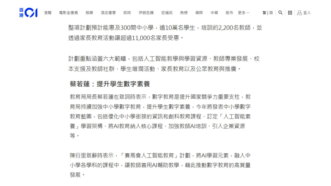 [媒體報導 HK01] 沈中展示令人動容的 AI 教育成果 帶領學校榮獲多個奬項