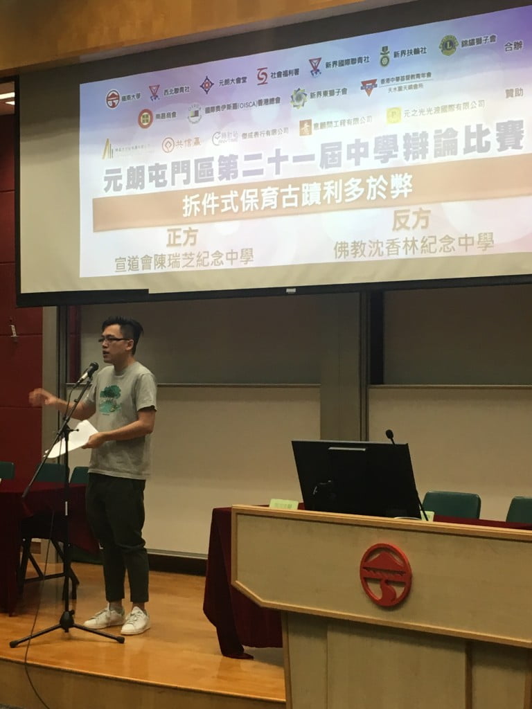 比賽的辯題為「拆件式保育古蹟利多於弊」,為了準備比賽,同學熟讀資料,了解香港的歷史古蹟及保育古蹟的方法。準備比賽的過程中,同學全力以赴,為提升即場辯駁的能力,隊員更特意進行模擬辯論,考驗同學應變能力。