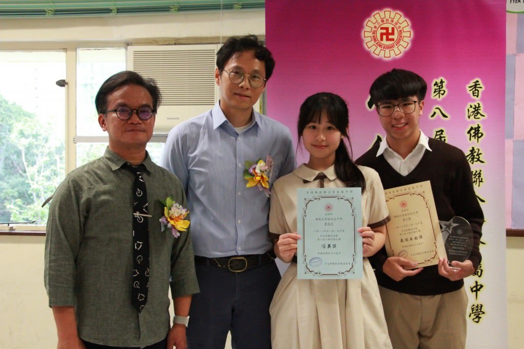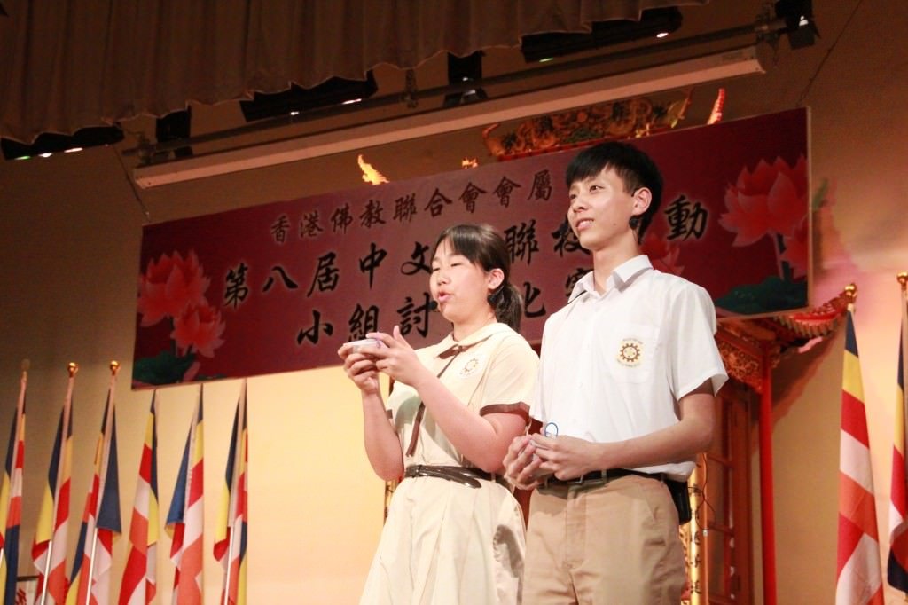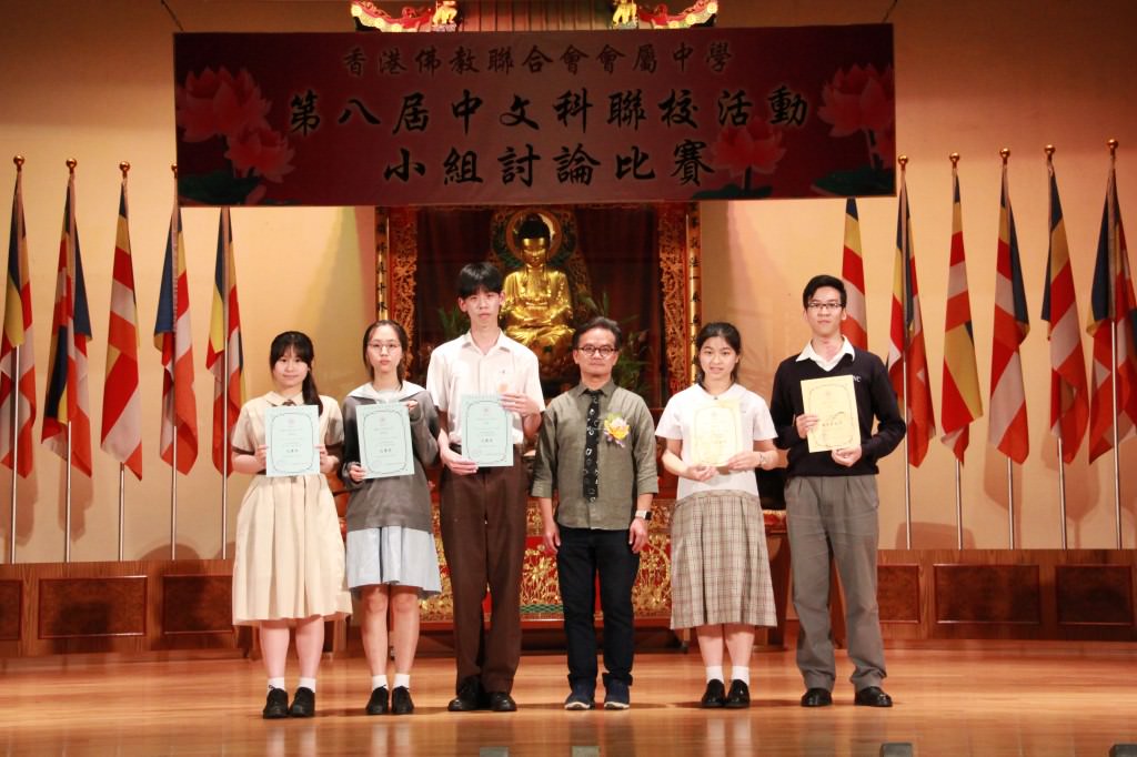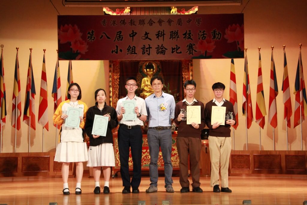 香港佛教聯合會「第八屆中文科聯校活動──小組討論比賽」已於本年4月30日(星期二)下午假本校禮堂舉行。本校為是次比賽的主辦學校,當天很榮幸邀得嶺南衡怡紀念中學關國康副校長、新界西貢坑口區鄭植之中學梁曉勁老師和葵涌循道中學蔡明翔老師在百忙中抽空擔任評判,佛聯會會屬中學五位校長撥冗蒞臨,令黌舍生輝。當天13間會屬中學共派出15位高中學生參加,比賽分3個小組進行,每組均設2個「最卓越表現獎」。本校5C班鄭子康同學憑著鮮明的立場、清晰的思路、縝密的心思,最終脫穎而出,獲得第三組比賽的「最卓越表現獎」,成績斐然。而5B鄒采欣同學則獲得第二組比賽的「表現優異獎」。在此,我們衷心祝賀各位獲獎同學之餘,亦期望本校同學能體現「自信樂學 堅毅感恩」的精神,勝不驕,敗不餒,為成就未來更卓越的自己而繼續努力。
