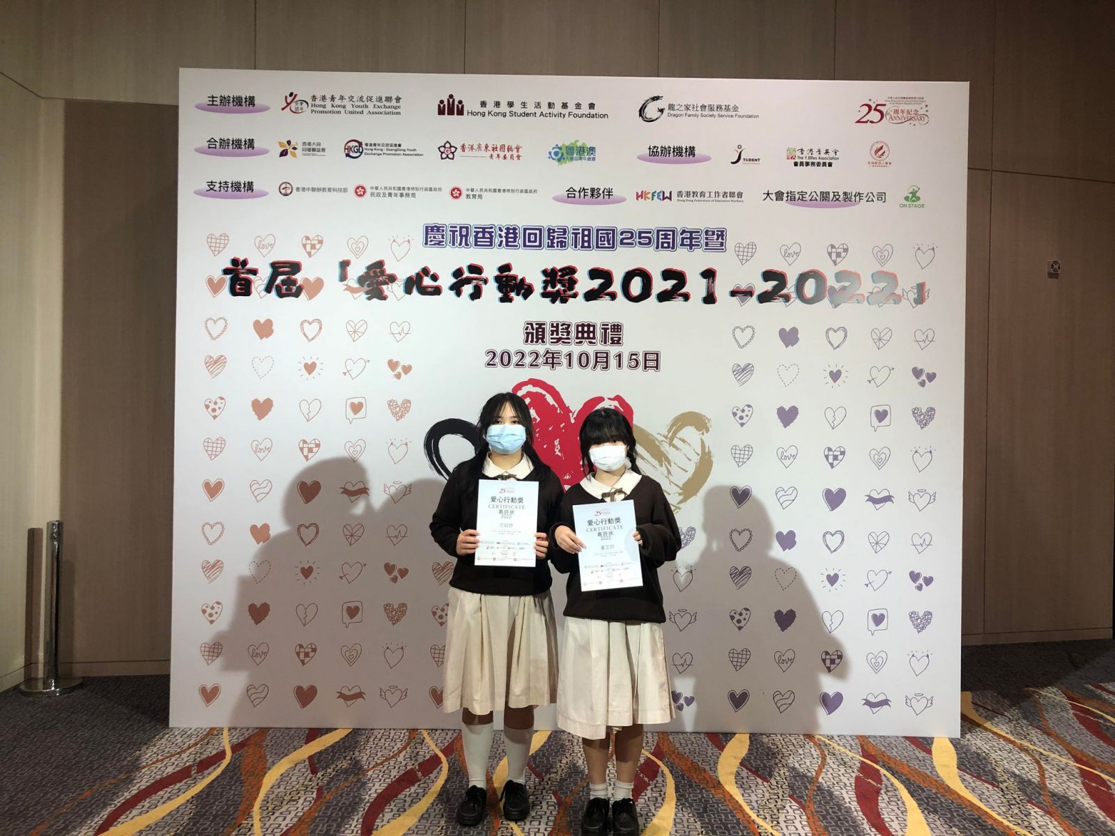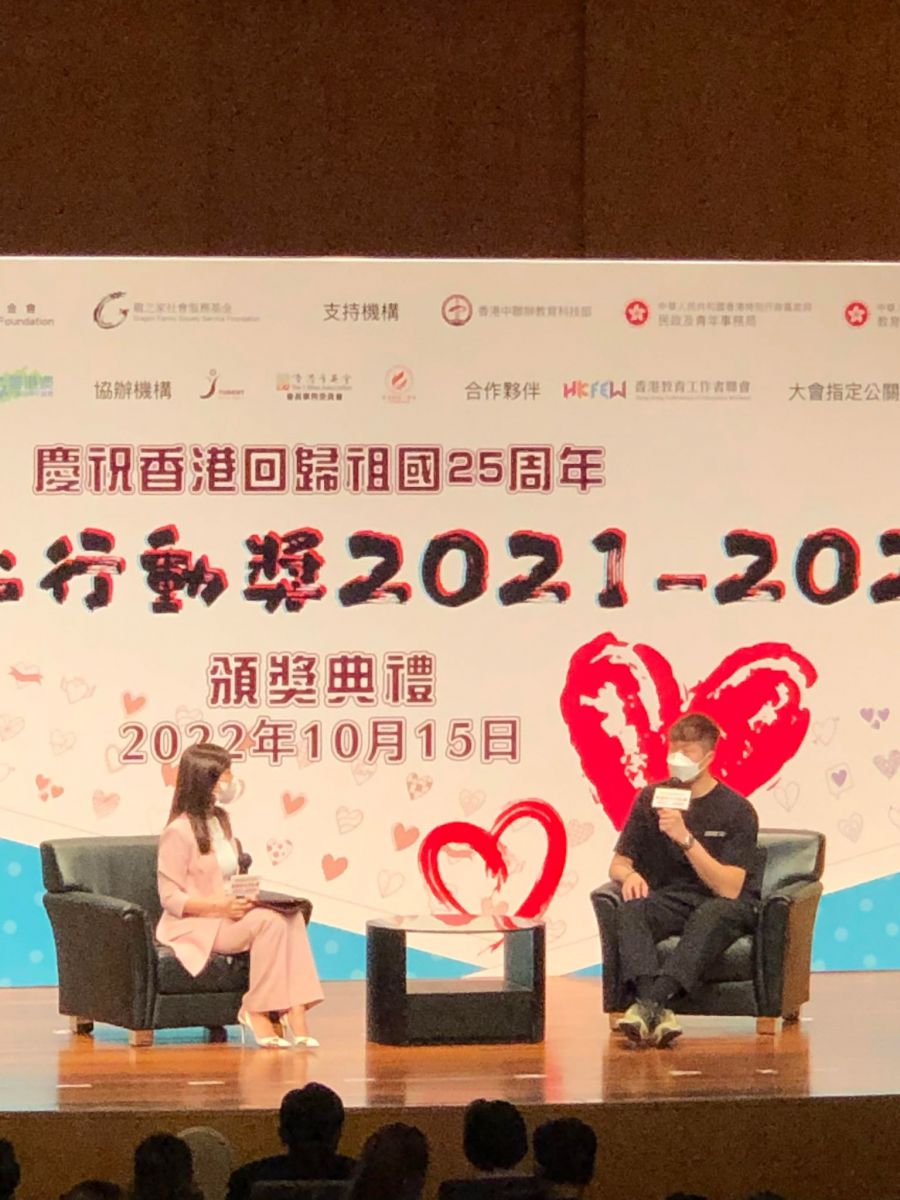 恭喜本校6C班張愷怡同學、5C班方綺婷同學及5B班盧芷筠同學獲得「愛心行動獎2021-2022」 嘉許狀,以表揚她們於義工服務的卓越表現。獲獎的三位同學在校內校外經常參與義工服務,更具有籌辦義工服務的經驗,經過參與面試才可獲得是次獎項。是次頒獎典禮更邀請了奧運金牌得主張家朗先生擔任頒獎嘉賓。