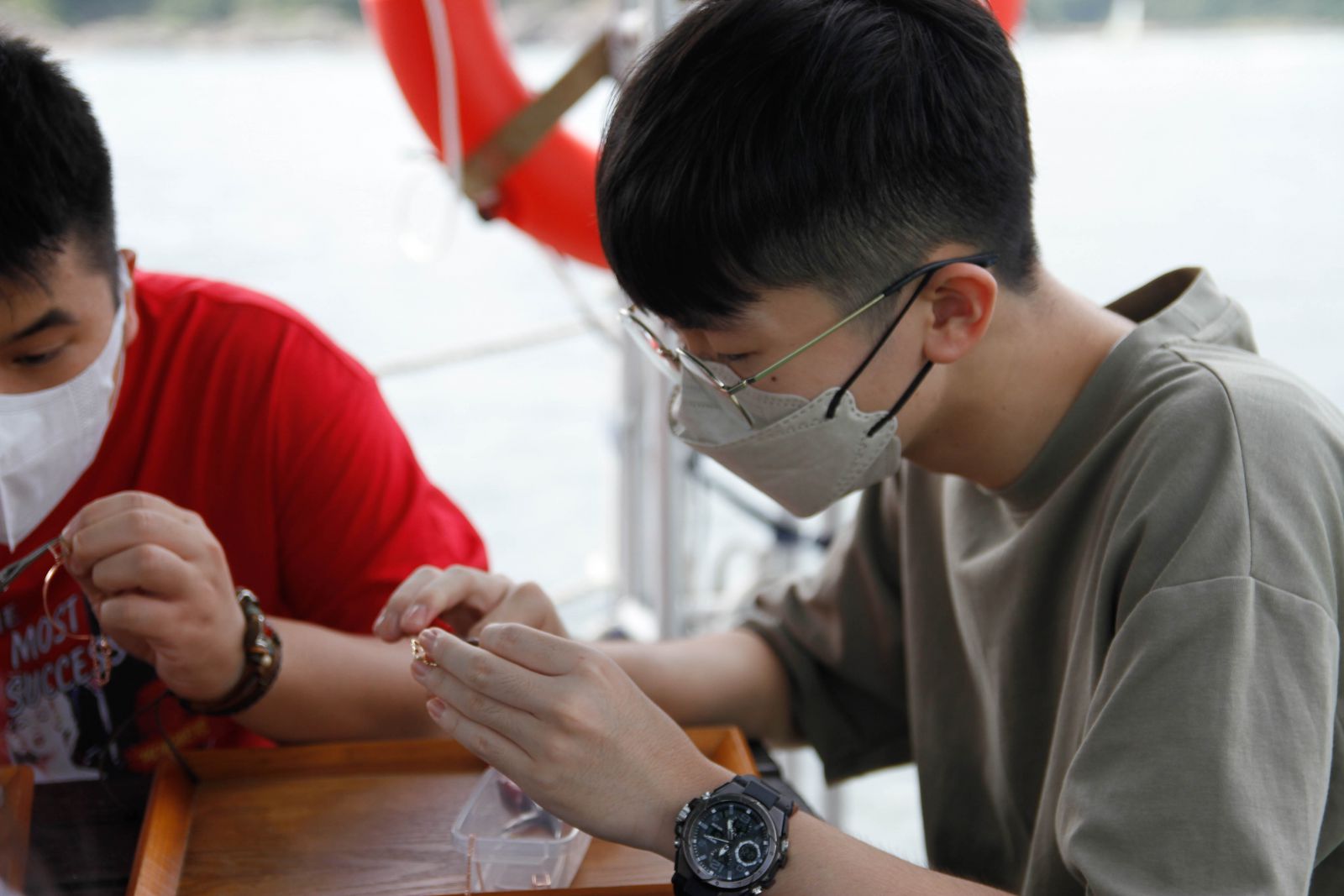在10月上旬,高中視覺藝術科、旅遊與款待科學生一起到西貢參加了由香港珍珠養殖協會舉辦的珍珠首飾DIY工作坊。在這3小時的海上體驗,學生不單了解香港珍珠歷史及現況、珍珠養殖基本知識及珍珠養殖與可持續性發展的關係;學生更在導師指導下,體驗了一次親自開蚌尋珠,製作了一屬於自己的珍珠首飾。相信是次活動必定給予學生一個難忘的藝術旅遊體驗!