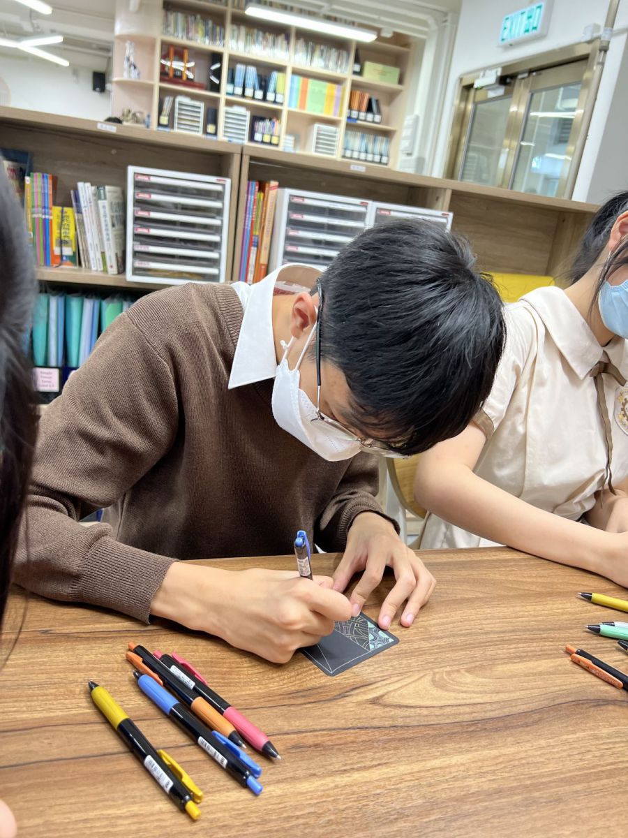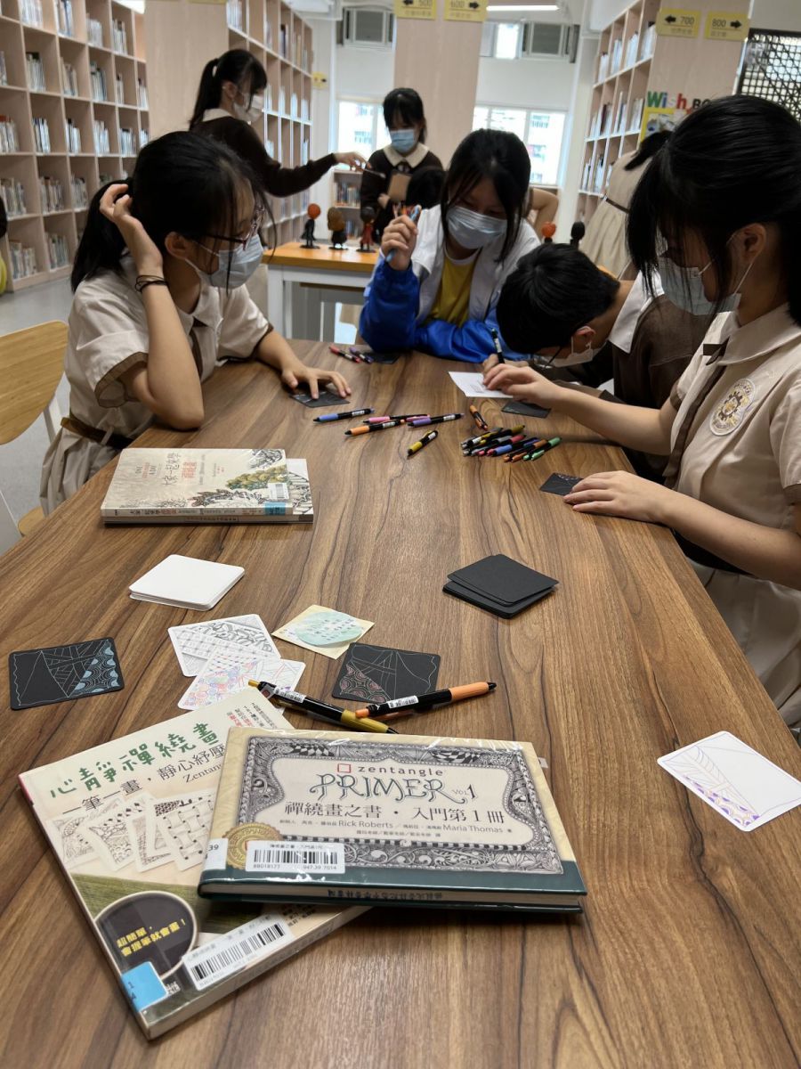 圖書館學會於2022年6月20-21日午息時段舉行禪繞畫工作坊,讓同學專注於一筆一畫的當下,享受靜心寧靜的時光,舒緩日常生活壓力,並透過不同的繪畫技法,製作獨一無二的書簽,獲得喜樂平安。