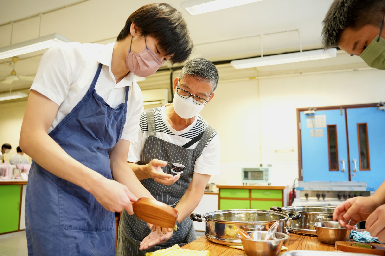 學生先留心觀看義工示範製作欒樨餅的過程,然後再分組製作。學生將粉漿混合、加入熱水攪拌粉糊、倒模、放入蒸籠,當中他們遇到不同的難題,但是最後都能一一克服,到最後成功製成欒樨餅。