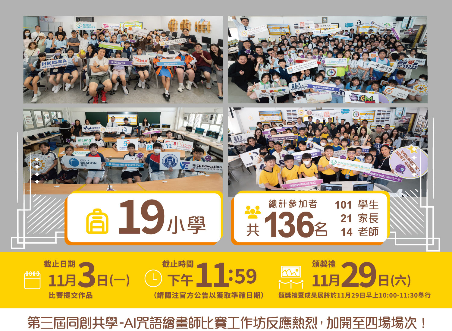 完成工作坊及提交作品的學校及其帶隊老師及家長均獲發: